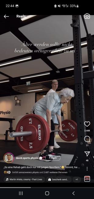Die meisten sind nach dem ersten Schock eher begeistert, dass ihnen jemand überhaupt noch zutraut, Hanteln zu schwingen, Gewicht zu bewegen und nicht nur ein bisschen die Schultern zu kreisen smiley